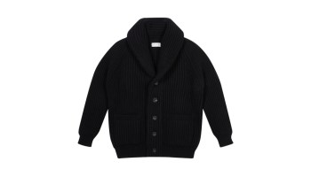 Drake’s Shawl Collar Cardigan – Made in Scotland with 100% lambswool and brown knotted leather buttons, this feels straight out of another century in the best way.