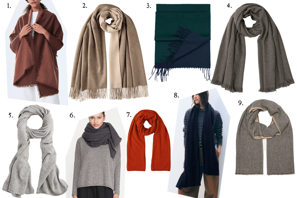 7. Toast Cashmere Wool Wrap – Toast’s take on the scarf-wrap-hybrid is made of a half-wool, half-cashmere blend in punchy autumnal colors.