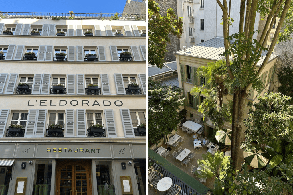 The vibe… We fell in love with the Eldorado–from its facade to the charming staff to the decor throughout. The interior palette, which is many shades of green, to mirror the garden, is calming and peaceful.