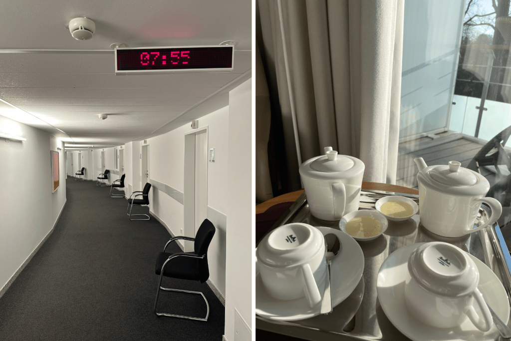 The medical vigilance is amazing. Every morning we’d wake up around 7am and immediately see the nurse, who’d take our blood pressure, pulse and weight, and tell us what to anticipate for the day—doctors, treatments, enemas, liver packs. She writes everything in a daily chart, which you bring to every medical appointment, and if there is anything that is off, like low blood pressure, she has the kitchen deliver black tea and pfiffikus, a salty broth that helps to raise it (this has happened to me twice!). After growing up in the U.S. medical system, it is such a luxury to have so many issues dealt with at once; to not have to wait weeks for an appointment, and to feel such sincere interest and care from the nurses and doctors. And while we have our regular doctors in New York, we consider Buchinger to be where we get our annual exams–which is the case with many of the guests.