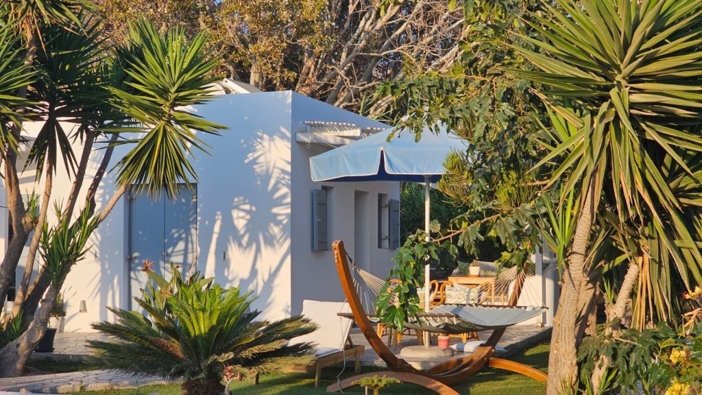 Where I’m staying… I’ve landed here for the summer season, working remotely and leading retreats and cultural experiences, so my stay is a bit different this year. As a shorter-term visitor, I loved staying at Amorgos Pearls, right in the center of Katapola, but just far enough away from the bustle of the port area. You have your own small house with a large front yard and hammock, and the owner’s adorable donkey Dolly grazes in the land just next door. It doesn’t get more picture-perfect Greek summer than that.